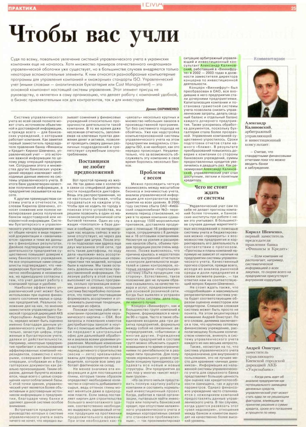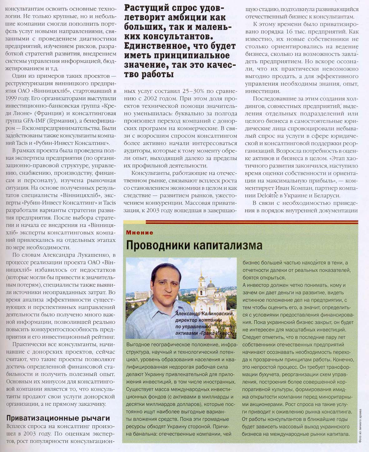 Управление компанией: ОАО «Виннифрут» намерено оживить фондовый рынок. Журнал «Рынок капитала» (№11-12 (59-60). 19 июня)