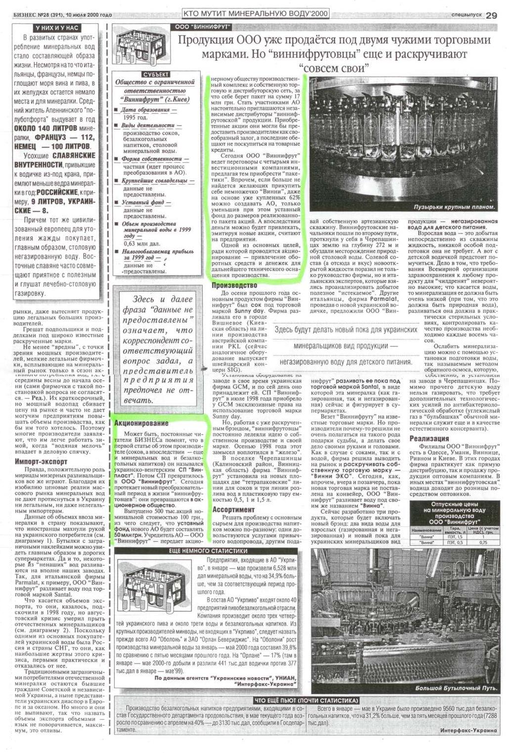 Кто мутит минеральную воду'2000. Газета «Бизнес» (№28 (391). 10 июля 2000 г.)